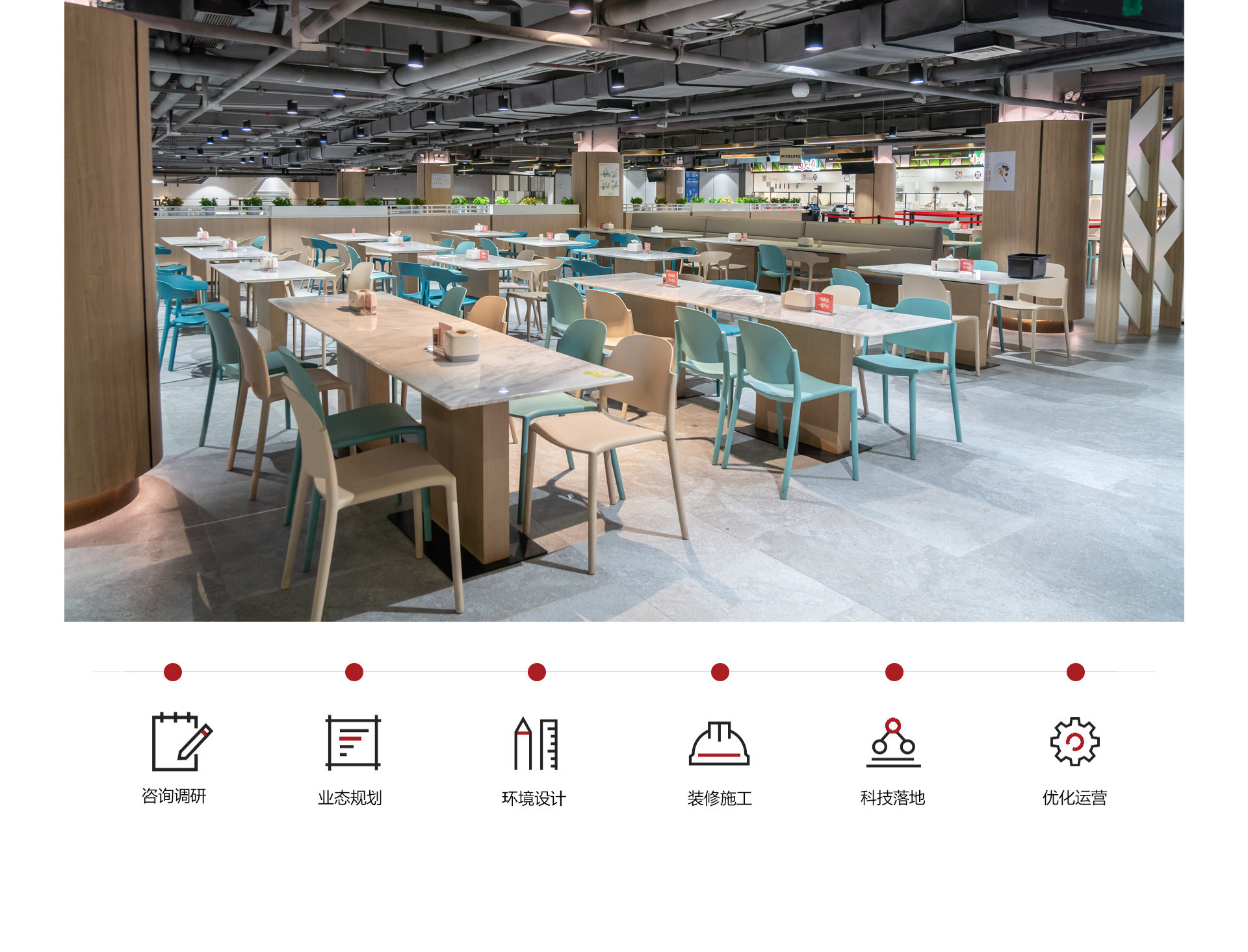 联合社餐品牌及自研孵化品牌合计100+,为客户带来美食广场式的就餐体验。